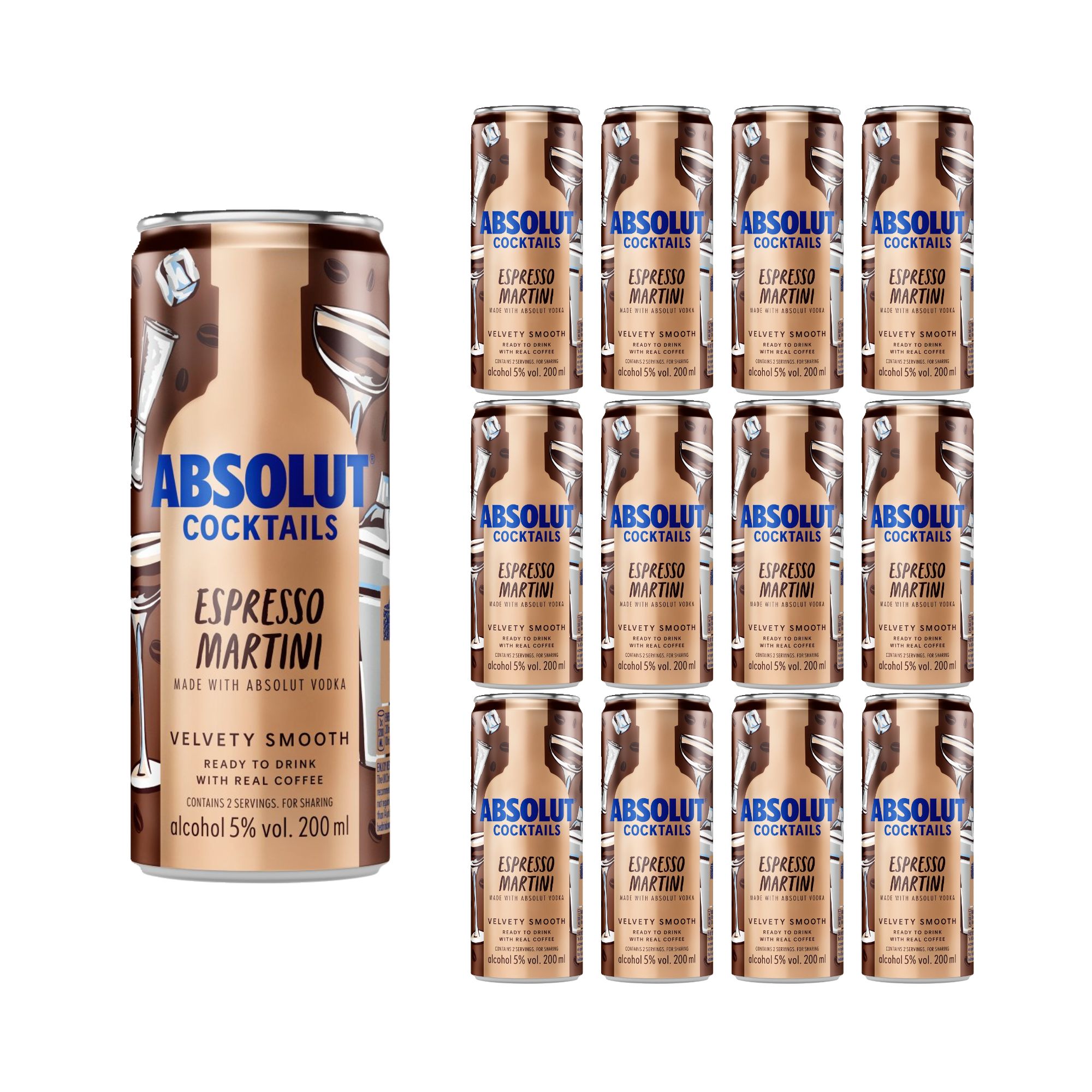 A ready-to-drink Espresso Martini crafted with Absolut Vodka and real coffee, offering a bar-quality cocktail experience in a convenient can.