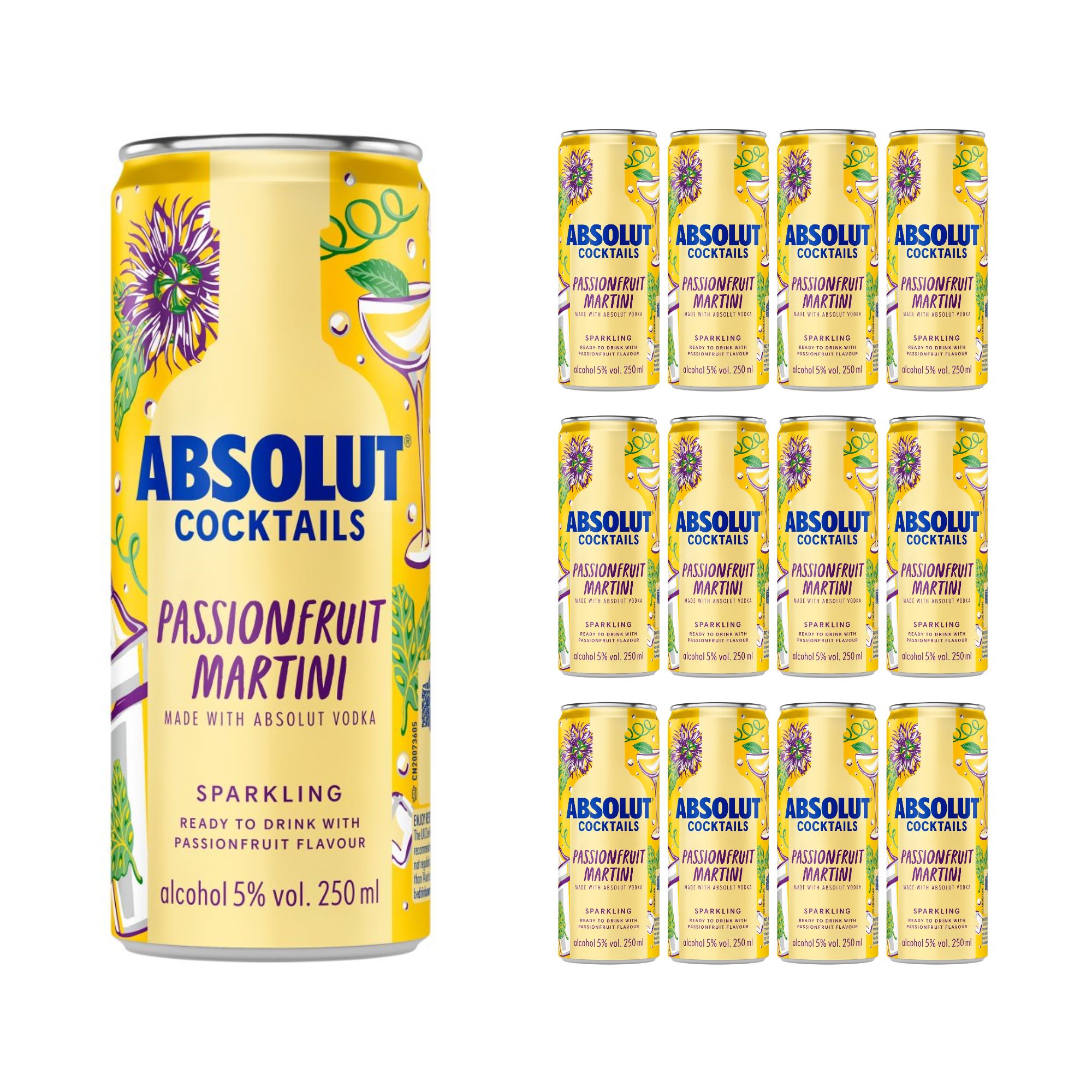 A sparkling, pre-mixed Passionfruit Martini with Absolut Vodka and tropical fruit flavours in a convenient 250ml can.