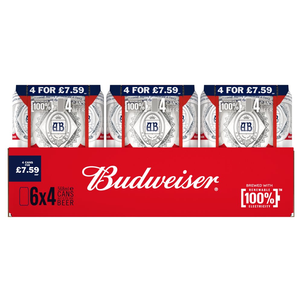 Budweiser Beer Can 4 x 568ml