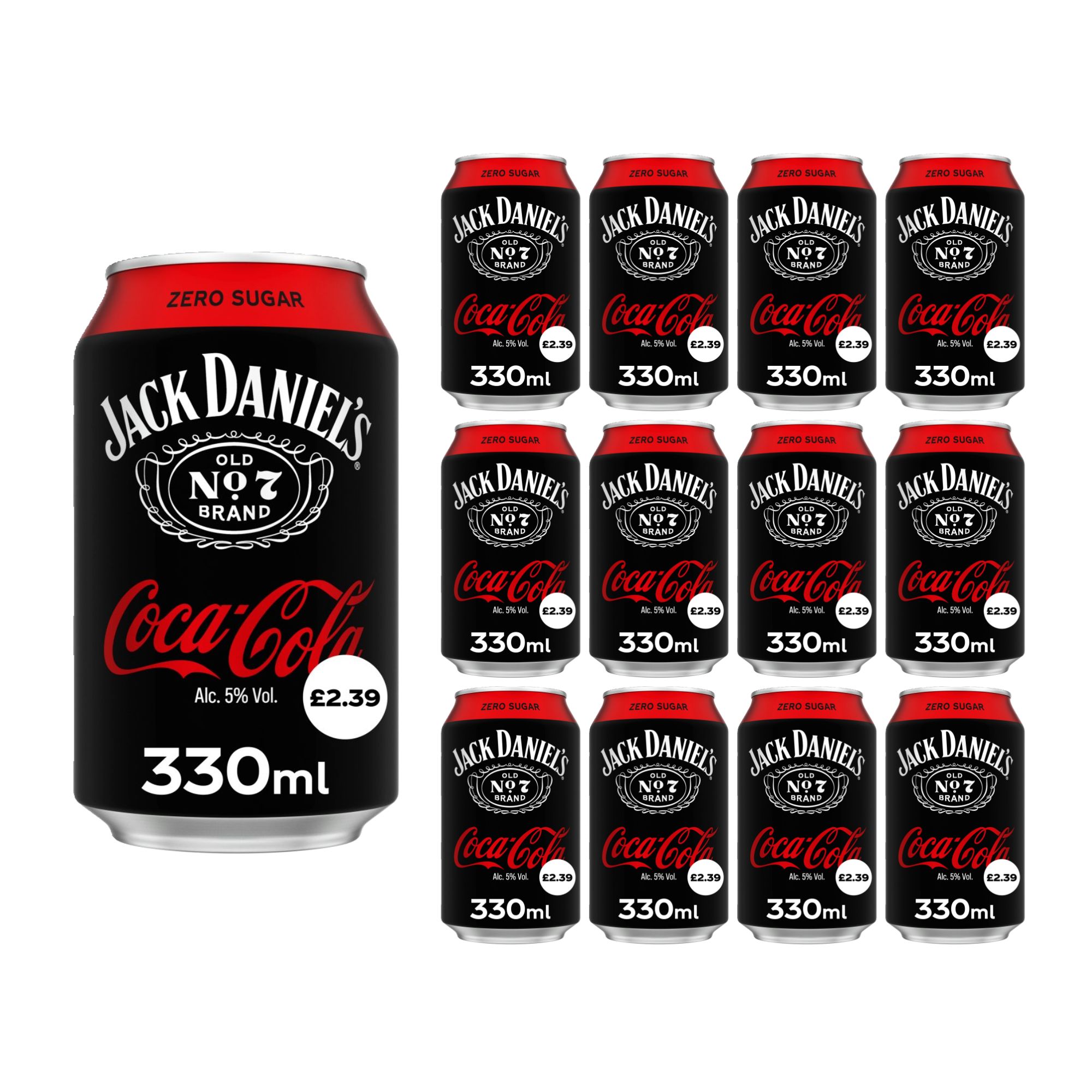 Jack Daniel’s Tennessee Whiskey mixed with Coca-Cola Zero Sugar in a 330ml can – sugar-free, smooth, and convenient.