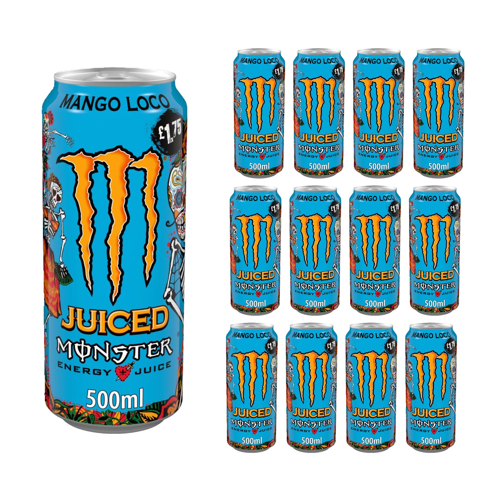 Monster Energy Mango Loco 500ml x 12 is a tropical-infused energy drink blending exotic fruit juices with Monster’s energy formula, delivering 160mg of caffeine per can.