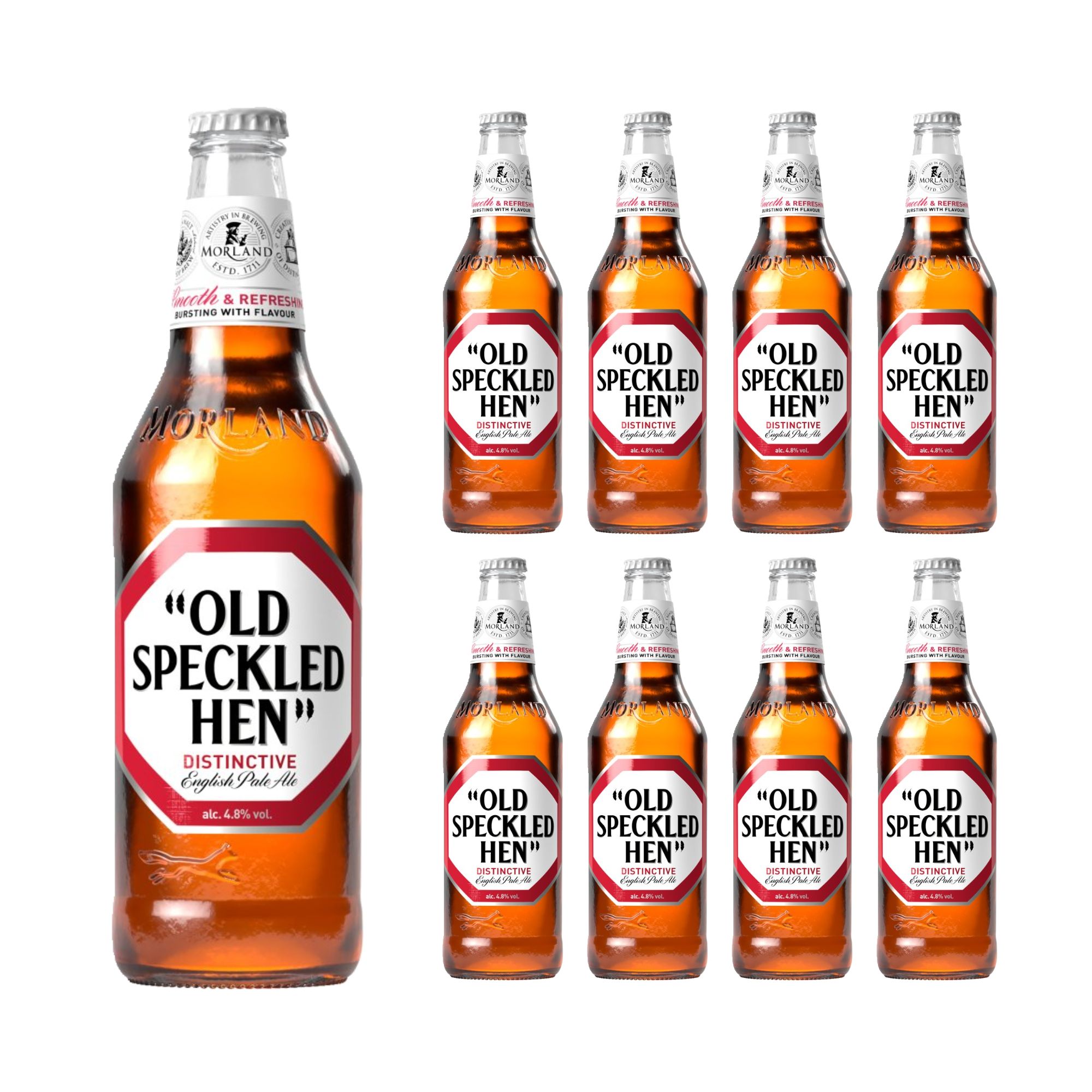 Old Speckled Hen is a traditional English Pale Ale, known for its rich amber colour and smooth, malty taste. Brewed with Pale and Crystal malts and a blend of English hops, it offers a well-balanced flavour profile with toffee and fruit notes, finishing with a gentle bitterness. This pack includes 8 bottles of 500ml each, perfect for sharing or enjoying over several occasions.