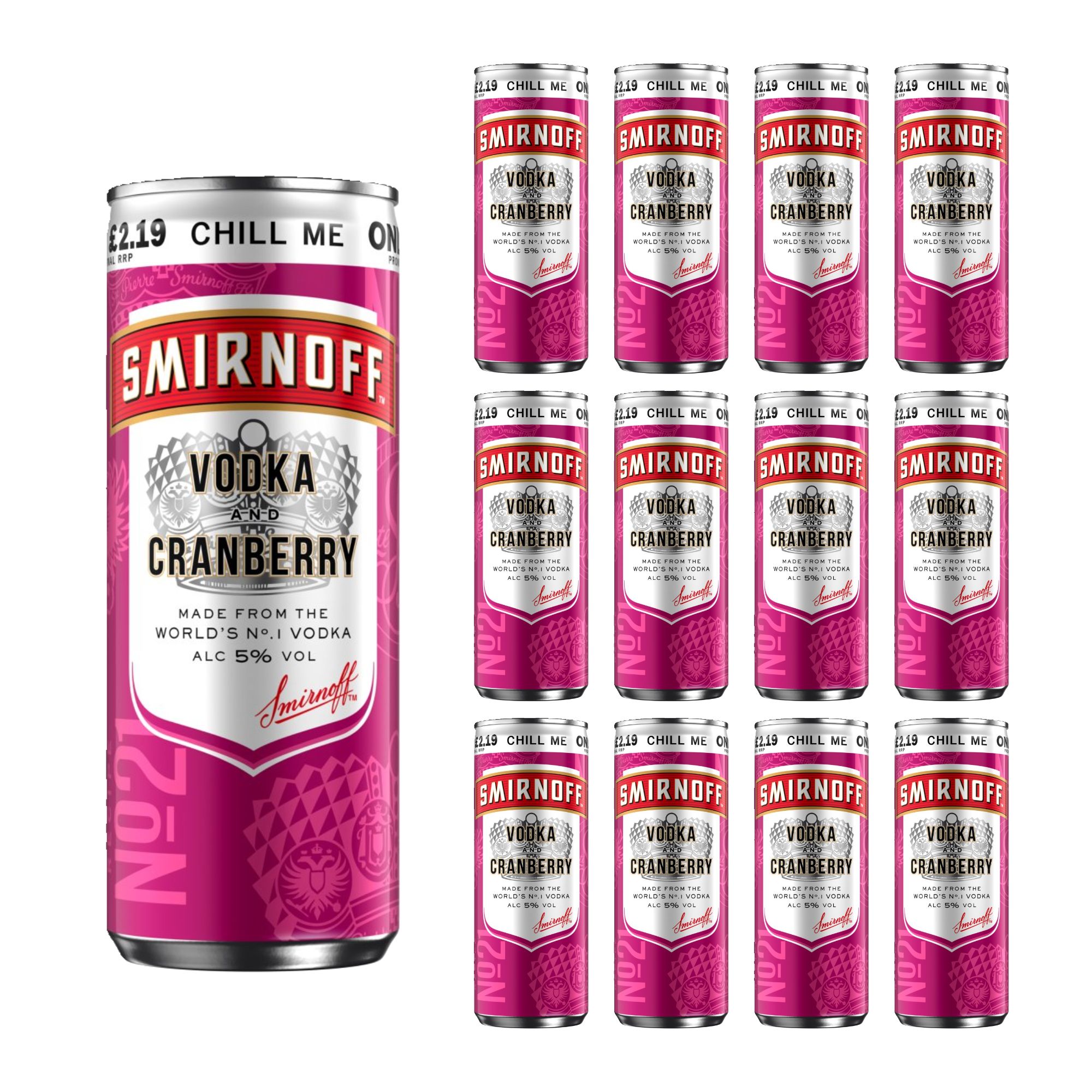 Smirnoff No.21 Vodka and Cranberry is a perfectly mixed, ready-to-drink beverage crafted with the world’s No.1 vodka and blended with crisp cranberry juice. Ideal for convenient enjoyment, this refreshing 5% ABV premix offers a balanced taste with a fruity kick, all in a sleek 250ml can. Whether you’re relaxing at home or on the go, this pack of 12 is great for sharing or stocking up